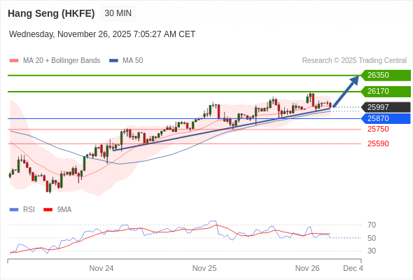 在 25870 之上,看涨,目标价位为 26170 ,然后为 26350 。