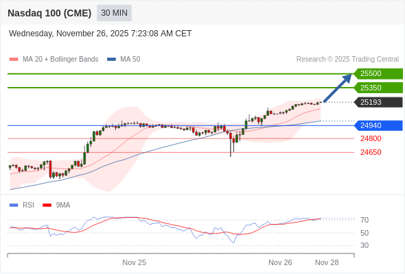 在 24940 之上,看涨,目标价位为 25350 ,然后为 25500 。